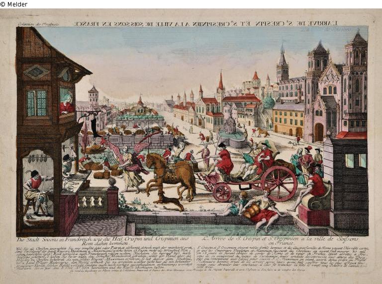 "Guckkastenbild" Titel above the stitch mirror image, below the stitch German and French description text. In the upper left corner pencil entry: No. 50