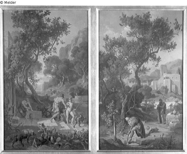 Found-Object Report | Object report Odyssey landscapes [2 paintings in a frame] (Two scenes from the Odysee) Lost Art-ID219018 Previous Next Artist / Creator Preller, Friedrich (der Ältere) Birth 1804.04.25, Eisenach Death 1878.04.23, Weimar Place of activityWeimar; Rom TitleOdyssey landscapes [2 paintings in a frame] (Two scenes from the Odysee) Dating1865Object typePaintingGroup of reported objectsPaintingMaterial / TechniqueOil ; Canvas / painted Height 42.00 cm Width 54.00 cm Depth 25.50 cm Inventory numbermü11720Description In einem Rahmen:1. Odysseus' Kampf mit den Ciconen (42 x 25,5 cm)2. Odysseus' Auszug aus Troja (42 x 25,7 cm)Kleinfigurige Szenen im Vordergrund. Im Hintergrund Felsenküste mit Burgen und Festungsmauern. Read more Read less Holding Kulturgüter aus dem ehemaligen ReichsvermögenPublished since2001 Contact Kunstverwaltung des Bundes Herbert-Bayer-Straße 5 13086 Berlin Germany E-Mailprovenienzforschung@kvdb.bund.deHomepagehttp://www.kunstverwaltung.bund.de