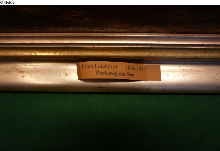 signed bottom left "Latendorf"; decorative frame lower frame bar center "Erich Latendorf 1866-1935 / Parkweg am See"