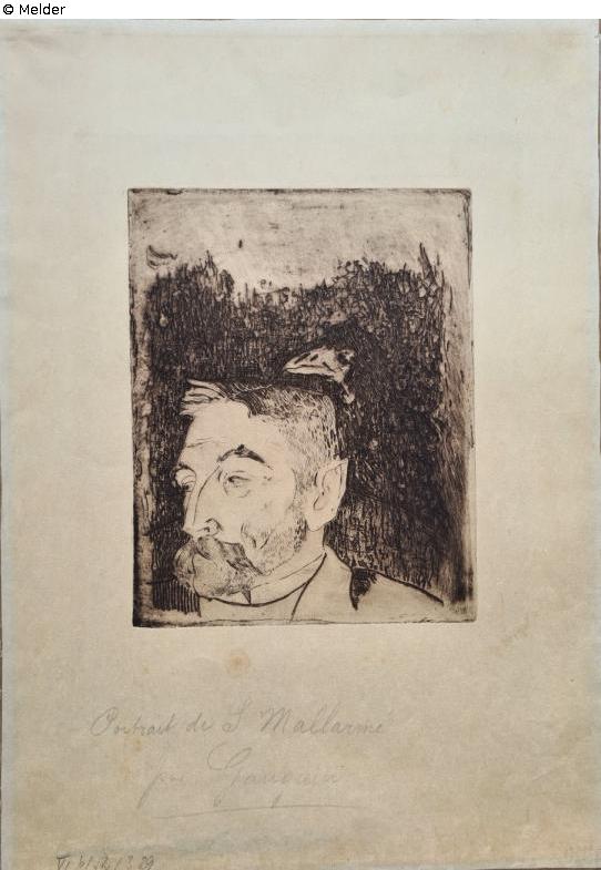Recto: signed and dated in plate upper left, below in pencil "Portrait de S. Mallarmé par Gauguin" inv. no. "VI b/52/329", "47/1907", recto: centre in pencil "38".