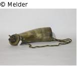 Das Horn ist an der Spitze mit einem Messingdeckel versehen, der in einer Tülle zum ausgießen des Pulvers endet. Auf der Innenseite des Bogens zwei moderne Schraubösen zur Aufnahme eines Trageriemens
