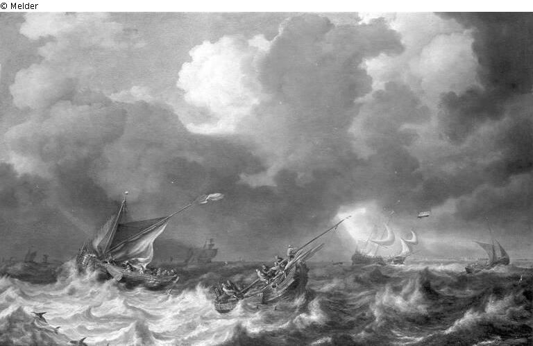 Found-Object Report | Object report Ships in the storm Lost Art-ID219007 Previous Next Artist / Creator Peeters, Bonaventura (1) (?) Birth (vor) 1614.07.23, Antwerpen Death 1652.07.25, Hoboken (Belgien) Artist / Creator Peeters, Bonaventura (2) (?) Birth 1648.10.17, Antwerpen Death 1702.09.02, Antwerpen Place of activityAmsterdam (Noord-Holland)?; Rotterdam (Zuid-Holland)?; Antwerpen? TitleShips in the stormObject typePaintingGroup of reported objectsPaintingMaterial / TechniqueOil ; Panel / painted Height 59.00 cm Width 92.00 cm Inventory numbermü11411Holding Kulturgüter aus dem ehemaligen ReichsvermögenPublished since2001 Contact Kunstverwaltung des Bundes Herbert-Bayer-Straße 5 13086 Berlin Germany E-Mailprovenienzforschung@kvdb.bund.deHomepagehttp://www.kunstverwaltung.bund.de