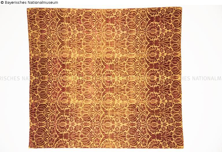 Überweisung 1965 Freistaat Bayern. Gemäß der Vereinbarung vom 06.12.1960 zwischen der Bundesrepublik Deutschland und dem Freistaat Bayern. 1965 dem Bayerischen Nationalmuseum (BNM) überwiesen.Von der Treuhandverwaltung von Kulturgut (TVK, tätig von 1952 bis 1962), übernommen vom Central Collecting Point (CCP) München aus dem Besitz/der Vermögenseinziehung von Hermann Göring (1893-1946). Provenienzforschung: laut Restitutionskartei (Eingangskarteikarte der Münchner Nummer 7399/28; Bundesarchiv, B323/659): "Herkunft: 1941/42 aus Italien an H. Göring/(anhängende Etikette)" [= Textilien aus der 'Sammlung Göring' BNM Inv.-Nrn. 65/166, 65/167, 65/174, 65/176.1-3, 65/179, 65/181-182, 65/184, 65/187, 65/189, 65/191-192.2, 65/194-195, 65/198, 65/200, 65/202, 65/212, 65/214.1-257, 65/259-272, 2012/48-49, 2012/54-55, 2012/70-72, 2012/97, 2012/106, 2012/108]. Eingang/Receipt (Central Collecting Point München): 06.08.1945; Ausgang/Issue (Central Collecting Point München): 10.06.1949 (Ministerpräsident). Am 29.01.1957/23.02.1957 von der Treuhandverwaltung von Kulturgut über die Finanzmittelstelle München des Landes Bayern gemäß Übertragungsurkunde Nr. 69 (Textilien aus dem Nachlaß von Hermann Göring) aus dem Besitz/der Vermögenseinziehung von Hermann Göring (1893-1946) in das Eigentum des Freistaats Bayern übergegangen: Nr. 102 der Übertragungsurkunde Nr. 69 (Textilien aus dem Nachlaß von Hermann Göring). Am 01.02.1961 als 'Überweisung aus Staatsbesitz' an die Bayerischen Staatsgemäldesammlungen; von dort am 26.02.1965 vom Bayerischen Nationalmuseum übernommen. Aus der 'Sammlung Göring': aus dem 'Göring'-Textilkonvolut mit der Münchner Nummer 7399/1-74 sind dem BNM vom Freistaat Bayern folgende Objekte überwiesen worden (Münchner Nummer = BNM Inv.-Nr.): 7399/5 = 65/174, 7399/22 = 65/167, 7399/25 = 65/201, 7399/28 = 65/181, 7399/29 = 65/180, 7399/30 = 65/184, 7399/31 = 65/192.1-2, 7399/41 = 65/207, 7399/46 = 2012/110, 7399/53 = 65/165, 7399/54 = 2012/68, 7399/73 = 65/202. Laut Kontrollnummernkartei (Karteikarte der Münchner Nummer 7399; Bundesarchiv, B323/616): "Besitzer/Possessor: Untern[umme]rn 1-4; 6-17; 19-21; 23-24; 32-40; 42-45; 47-52;/ 55-64; 66-69; 71-72; 74; restit[uted] to France, 1.7.49/Restituiert: Untern[umme]r 70": "confiscated by E[insatzstab]R[eichsleiter]R[osenberg]" (vgl. Münchner Nummer 4730 = BNM Inv.-Nrn. 60/133.1-60/135; Münchner Nummer 7396 = BNM Inv.-Nrn. 65/166, 65/170, 65/172-173, 65/175-176.3, 65/188-189, 65/200, 65/214.1-3, 2012/48-49, 2012/65, 2012/67, 2012/108, 2012/122, 2012/249-250; Münchner Nummer 7397 = BNM Inv.-Nrn. 65/162-163, 65/210, 65/186-187, 65/191, 65/194-196, 65/198, 65/209, 65/212, 65/215, 2012/54, 2012/70-72, 2012/89-90, 2012/97, 2012/106; Münchner Nummer 7398 = BNM Inv.-Nrn. 65/168-169, 65/171, 65/178-179, 65/182, 65/185, 65/190, 65/208, 65/213, 2012/42, 2012/55, 2012/96, 2012/104, 2012/109, 2012/123-124). Vorprovenienz: Italien, Albergo Excelsior Italia, Florenz [= Textilien aus der 'Sammlung Göring' BNM Inv.-Nrn. 65/167, 65/176.1-3, 65/181-182, 65/194, 65/198, 65/200, 65/214.1-3, 65/215, 2012/71-72, 2012/250]. Zu unbekanntem Zeitpunkt (1941/1942 ?) aus unbekanntem Eigentum/Besitz in die 'Sammlung Göring'. Aufgrund der Provenienzlücke(n) kann ein NS-verfolgungsbedingter Entzug nicht ausgeschlossen werden./A.G., 2018