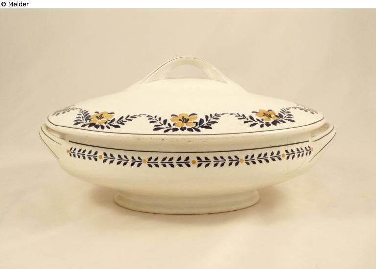 Found-Object Report | Object report Tureen with lid Lost Art-ID576528 Previous Next Artist / Creator Villeroy & Boch, Bonn TitleTureen with lid Dating1920-1935Object typeVesselGroup of reported objectsCrafts and other folk artsMaterial / TechniqueCeramics (Earthenware)Inventory number32404Description oval with surrounding decor Read more Read less Provenance The terrine was bought in 1942/43 at a sale of used household goods in Neuenkirchen at Bramsche in the Welling restaurant. 2017 handed over by the buyer's granddaughter to the museum village Cloppenburg. Read more Read less Published since17.04.2018 Contact Museumsdorf Cloppenburg / Niedersächsisches Freilichtmuseum 49661 Cloppenburg Germany Phone(04471) 94840Fax(04471) 948474E-Mailmuseumsdorf@nwn.deHomepagehttp://www.museumsdorf.de
