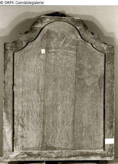 Unbekannt: Unter dieser Rubrik wurden sowohl in der Gemäldegalerie (Ost) als auch in der Galerie Dahlem Bilder verzeichnet, deren Einlieferungsdatum und -herkunft völlig unbekannt sind. Es kann sich wie bei den unter "Priv" verzeichneten Stücken sowohl um solche aus eingelagertem Privatbesitz als auch um begonnene und nicht abgeholte Restaurierungsaufträge oder liegengebliebene Kopistenarbeiten handeln. Geismeier, Fremdbesitz, 1999, S. 67 Katalogtext: Der Solly-Übernahmezettel dat. aus dem sog. "Vorläufigen Verzeichnis" von 1819, vgl. W. Köhler, Die Sammlung Solly, Merkmale und Kennzeichen ihrer Bilder. In: Miklos Boskovits, Frühe italienische Malerei, Gemäldegalerie Berlin 1988, S. 185. Nach Köhler ist die Sollysammlung niemals in toto katalogisiert worden. Nicht jedes Solly-Zeichen weist auf die von der Berliner Gemäldegalerie übernommenen Solly-Bilder, da bei der Bestandbereinigung 1880-1886 zahlreiche Depotstücke von Berlin an andere Institute und Provinzmuseen abgegeben worden sind. Geismeier, Fremdbesitz, 1999, S. 67 f.