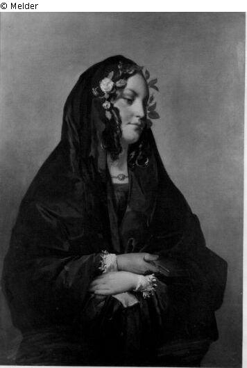 Found-Object Report | Object report Young woman with a head scarf and roses in her hai Lost Art-ID219454 Previous Next Artist / Creator Amerling, Friedrich von Birth 1803.04.14, Wien Death 1887.01.14, Wien Place of activityRom; Wien TitleYoung woman with a head scarf and roses in her haiObject typePaintingGroup of reported objectsPaintingMaterial / TechniqueOil ; Canvas / painted Height 103.50 cm Width 72.00 cm Inventory numbermü2429Description Kniestück. Frau nach rechts sehend, die Hände übereinander. Die Rechte hält ein Gebetsbuch. Read more Read less Holding Kulturgüter aus dem ehemaligen ReichsvermögenProvenance um 1938/1939 von Kunsthändlerin Frau Almas-Dietrich, München, aus Wiener Privatbesitz an das Deutsche Reich verkauft Read more Read less Published since2001 Contact Kunstverwaltung des Bundes Herbert-Bayer-Straße 5 13086 Berlin Germany E-Mailprovenienzforschung@kvdb.bund.deHomepagehttp://www.kunstverwaltung.bund.de