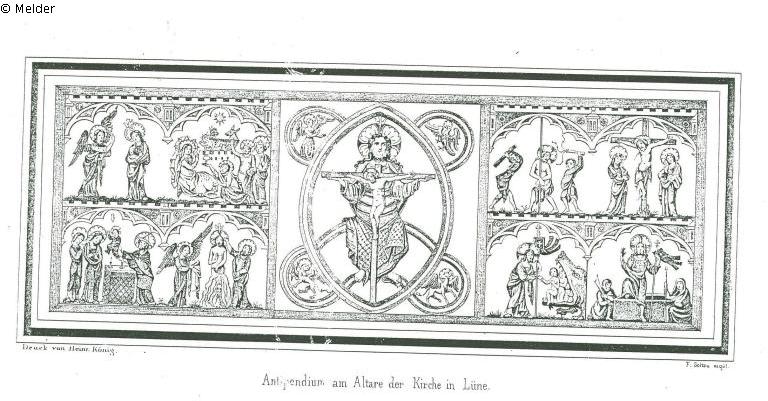 Antependium in the altar of the church in Luene