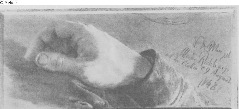 bez. u. beschr. r.: A. Menzel. Meine Rechte gez. mit der Linken, 29. August 1848