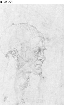Head of a beardless man to the right