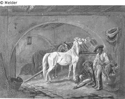 In the horse stable