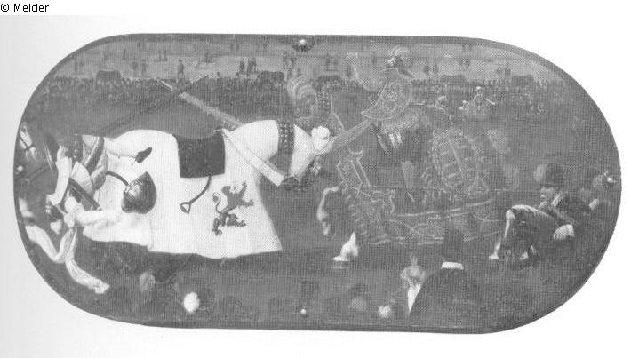 Jousting scene with Bastian of Wichtershausen and Heinrich von Schoenberg, 1554 in Dresden