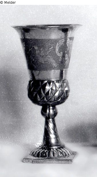 Goblet, foot and lower part wrought and slightly chased, around the goblet's bowl an approx. 4 cm wide wrought and chased band with ornamental foliage and eagle. Silver mark.