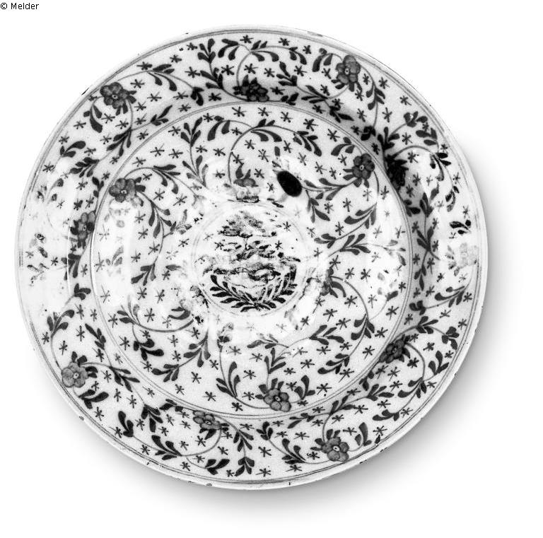 Large Delft faience plate with blue arabesques.