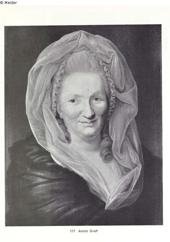 Half-length portrait, with wide folded gauze veil in black dress. G.-R.
