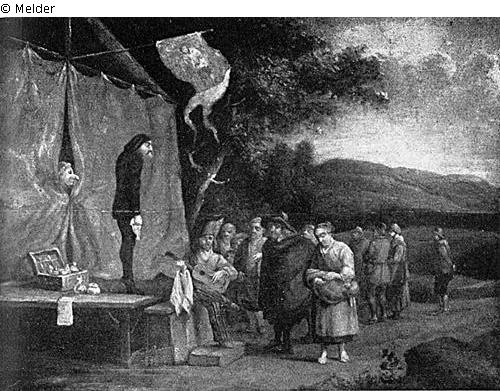 Search Request | Object report The quacksalver (Magician, burlesque with group of spactators; presentation of impostors) Lost Art-ID314202 Previous Next Artist / Creator Dujardin, Karel Birth 1622, Amsterdam Death 1678.11.20, Venedig Place of activityAmsterdam; Den Haag; Rom; Venedig TitleThe quacksalver (Magician, burlesque with group of spactators; presentation of impostors) Dating1657Object typePaintingGroup of reported objectsPaintingMaterial / TechniqueOil ; Panel / painted Height 24.00 cm Width 30.00 cm Description dat. u. bez. K. du Jardin 1657 Read more Read less Provenance Wilhelm und Daisy Hellmann, Wien, bis mind. 1938; Beschlagnahme durch die GESTAPO, um 1941; Dorotheum, Wien, 473. Kunstauktion, 14. April 1942, Los 41, Tafel 17 (VUGESTA Konsignations-Nr. 685/470) Read more Read less Published since2006 Contact Please contact the German Lost Art Foundation.