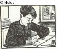 im Brief von Felixmüller an Graetz vom 14.11.1932 als ""Schreibender Knabe"" bezeichnet (vgl. GNM, ABK, NL Felixmüller I, C-1e, Durchschreibebuch X vom 18.07.1932-19.03.1933, Bl. 18,3); Auflage ca. 10 Exemplare
