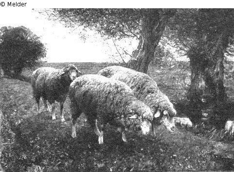 MŠANO: 5./ Sheep, oil on canvas, sign. H. Zügel, height 116 cm, width 164 cm, moulded, embossed frame. 500,- CZK