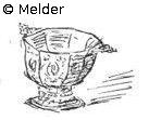 Silver bowl. Octagonal on foot, with pierced ring, two handles in pierced ornament. The eight fields engraved with allegorical figures and coats of arms in cartouches. Charge receipt stamp 7554 (Rosenberg IV). Netherlands.