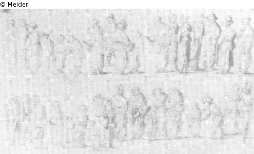 drawn (pen-and-ink drawing) ; washed