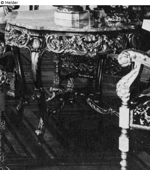 Search Request | Object report tablecloth Lost Art-ID566788 Previous Next Artist / Creator Unknown TitletableclothObject typeFurnitureGroup of reported objectsCrafts and other folk artsMaterial / TechniqueWood ; Marble / carvedDescription Richly carved table with marble plate.Source: Foto in private property. Read more Read less Provenance collection Emmerich Kálmán, Wien – Paris; 1942 (approx.) confiscation by Einsatzstab Reichsleiter Rosenberg (ERR), Paris Read more Read less Published since15.02.2017 Contact Mondex CorporationE-Mailinfo@mondexcorp.com