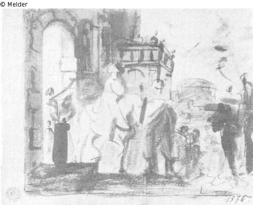 drawn (pen-and-ink drawing) ; washed
