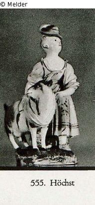 Hahn: Boy and girl with billy goat in fine quality and very good condition. Blue wheel mark.