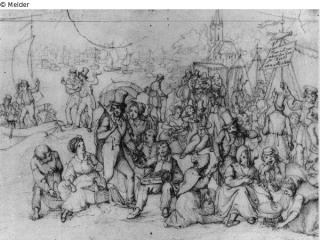 Found-Object Report Festival at Stralauer haul. In the background Stralauer Church and numerous ships on the Spree Artist / Creator Korneck, Albert Object type Drawing Material / TechniquePencil ; Paper / drawnLost Art-ID475380