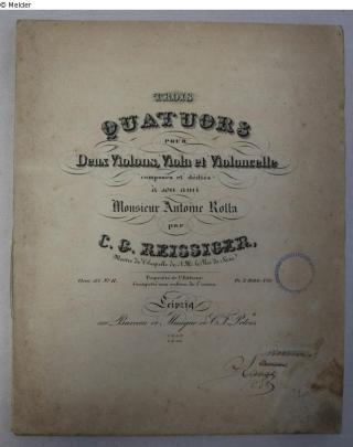 Found-Object Report Trois Quatuors Author Reissiger, Carl Gottlieb Publisher Peters Object type Sheets of music Lost Art-ID613561