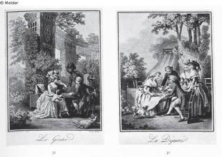printed (stipple engraving) ; printed coloured