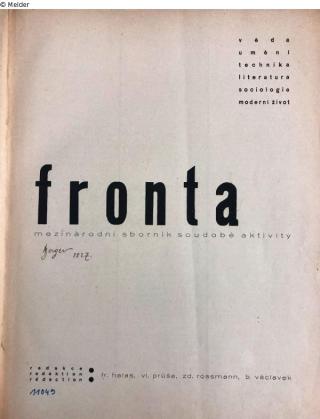 Found-Object Report front. internationaler almanach der aktivität der gegenwart / front. recueil international de l'activité contemporaine/ fronta. mezínárodni sborník soudobé aktivity kunst technik literatur soziologie wissenschaft modernes leben Editor fr. halas, vl. prúša, zd. rossmann, b. václavek Publisher edition fronta, brno Object type Book Lost Art-ID596405