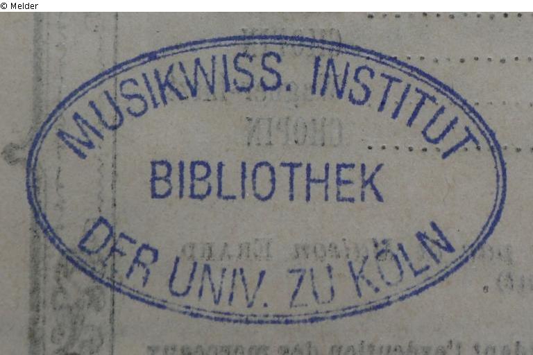 Autogramm: "A. []"; Rundstempel: "Musikwissenschaftliches Institut der Universität Köln"; ovaler Stempel: "Musikwiss. Institut der Univ. zu Köln Bibliothek"; handschriftliche Inventarnummer: "13,369";