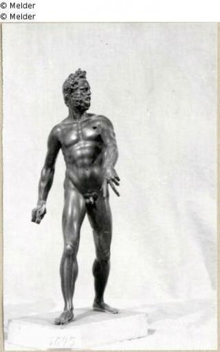 Fundmeldung | Einzelobjekt Athlet mit Schwert Lost Art-ID220487 Vorherige Weiter Hersteller/Künstler:in Bologna, Giovanni Geburt (um) 1524, Douai Tod 1608.08.13, Florenz WirkungsortMons; Rom; Florenz; Bologna; Pratolino TitelAthlet mit SchwertObjektartPlastik / SkulpturObjektgruppePlastik / SkulpturMaterial / TechnikMetall (Bronze) Höhe 39,00 cm Inventarnummermü7095Beschreibung Kopf nach rechts, linker Arm ausgreifend - auf Marmorsockel. Weiterlesen Weniger anzeigen Bestand Kulturgüter aus dem ehemaligen ReichsvermögenVeröffentlicht seit2001 Kontakt Kunstverwaltung des Bundes Herbert-Bayer-Straße 5 13086 Berlin Deutschland E-Mailprovenienzforschung@kvdb.bund.deHomepagehttp://www.kunstverwaltung.bund.de