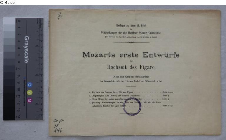 Erste Entwürfe zur Hochzeit des Figaro: nach den Original-Handschriften im Mozart-Archiv der Herren André zu Offenbach a. M.