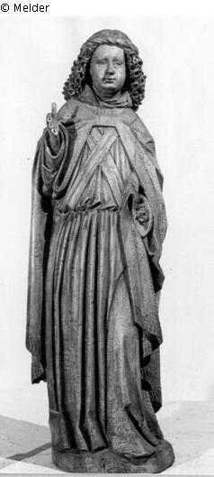 Fundmeldung | Einzelobjekt Erzengel [Hl. Michael?] (Stehender Verkündigungsengel) Lost Art-ID565977 Vorherige Weiter Hersteller/Künstler:in Unbekannt (Deutsch / Süddeutschland) TitelErzengel [Hl. Michael?] (Stehender Verkündigungsengel) Datierung1490 (um)ObjektartPlastik / SkulpturObjektgruppePlastik / SkulpturMaterial / TechnikHolz Höhe 120,00 cm Inventarnummermü5627Beschreibung Holz ungefaßt; Engel mit langem, lockigem Haar; die rechte Hand erhoben. Weiterlesen Weniger anzeigen Bestand Kulturgüter aus dem ehemaligen ReichsvermögenVeröffentlicht seit05.01.2017 Kontakt Kunstverwaltung des Bundes Herbert-Bayer-Straße 5 13086 Berlin Deutschland E-Mailprovenienzforschung@kvdb.bund.deHomepagehttp://www.kunstverwaltung.bund.de
