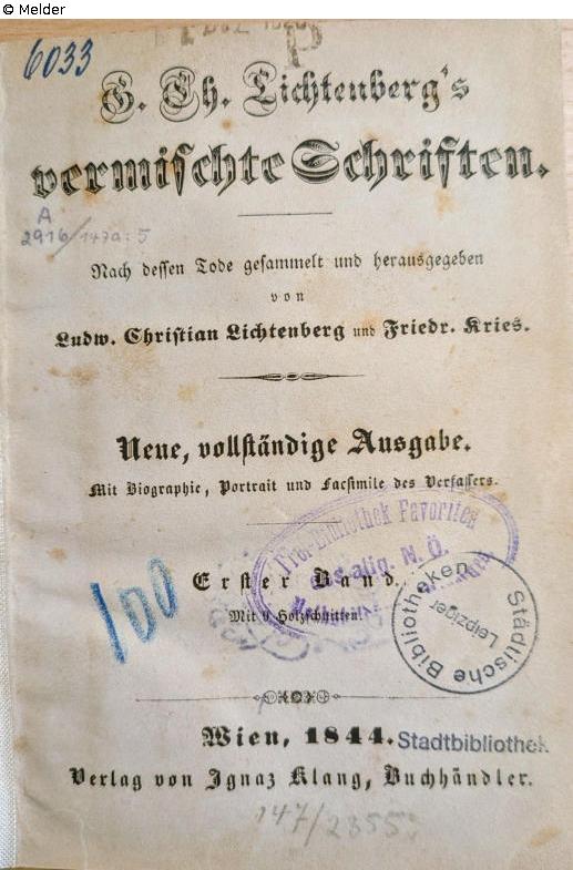 Hardcover, Ledereinband mit neuem Vorsatzpapier, 311 S. Fraktur, Ausleihzettel, Titelblatt mit Stempel "Frei-Bibliothek Favoriten des ahg.N.O. Volksbildungs Vereins", Eingetragene Nummern in Blau 6033 u. 100, Stempel P (beschnitten), Stempel Leipziger Städtische Bibliotheken, Zugangsnummer Leipziger Stadtbibliothek (47/2355)