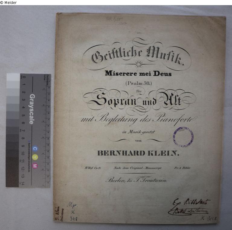 handschriftliche Notiz: "Ex Bibliotheca Bottée de Toulmon"; Rundstempel: "Musikwissenschaftliches Institut der Universität Köln"; Stempel: "Musikwissenschaftliches Institut der Universität Köln"; handschriftliche Inventarnummer: "11648";