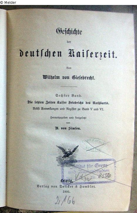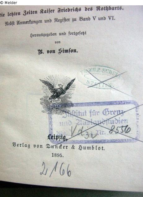 auf Titelblatt: "2166" [Signatur, Bleistift], Institut für Grenz- und Auslandstudien, Abt. Vd3v, Nr. 8556 [Stempel und Signatur, Bleistift], "Freie Schule Stettin" [Stempel]