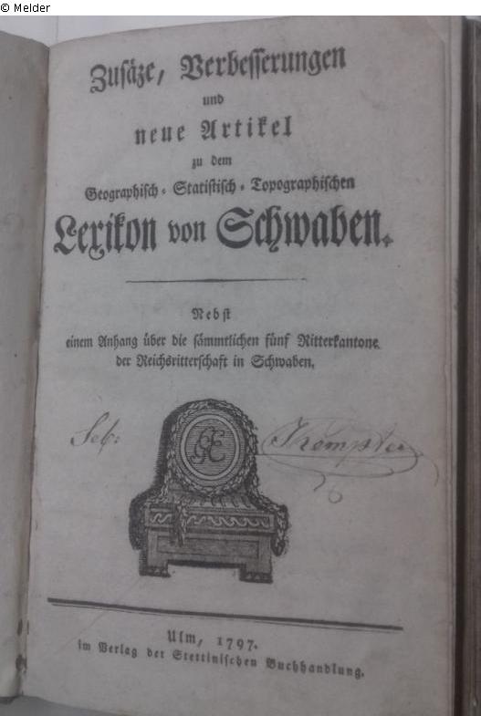 Buch; Papier, Druckfarbe, Einband, Karton. H 21 cm ; B 14 cm. Handschriftliche Eintragungen: "983/86/3 im Kat(alog) 50,-", "O.L", "Johannes Fischer in Rurgau(?)", "Ferdinand Fischer in Rurgau(?)...", "Sept Kempler" Kulturamtsstempel aus Tübingen auf dem Vorsatzblatt.