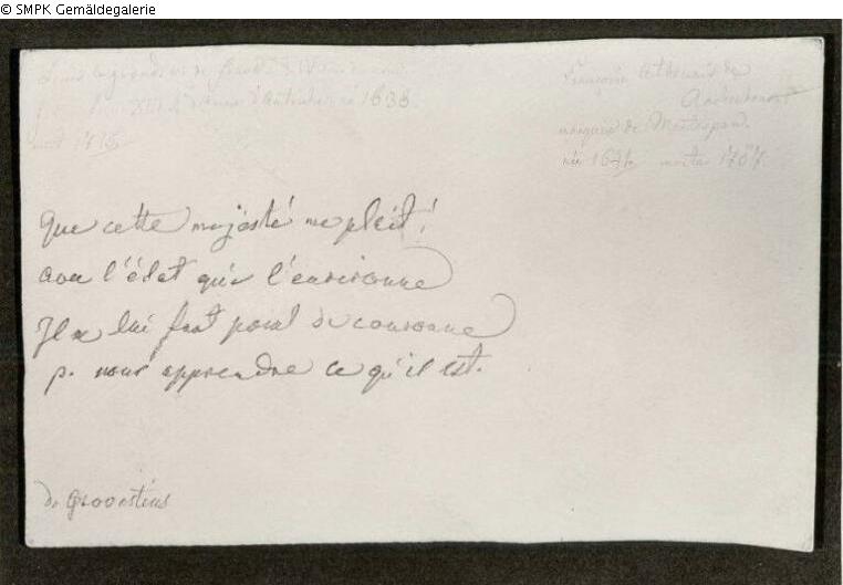 besondere Kennzeichen: Vorderseite Mi. u. Inschrift: Le 9 Juin 1816"; re.am Rand: 9; re.u.: Gezeichnet von Marianne Chodowiecki Rückseite li.o. Inschrift: Louis le grand roi de france XIVieme du.../ fil a Louis XIII A d Anne d Autriche. ne 1638./ mort 1715 ; li.Mitte Inschrift: que cette majeste me pleit: / avec l etat qui l environne/ Il se lui...decouronne/ g. Nous apprendre ce quil est. ; re.o. Inschrift: Francoise Atheneus de/...marquise de Montespan/ nee 1641 ./ morte 1707 ; li.u. Inschrift: de Grovestins