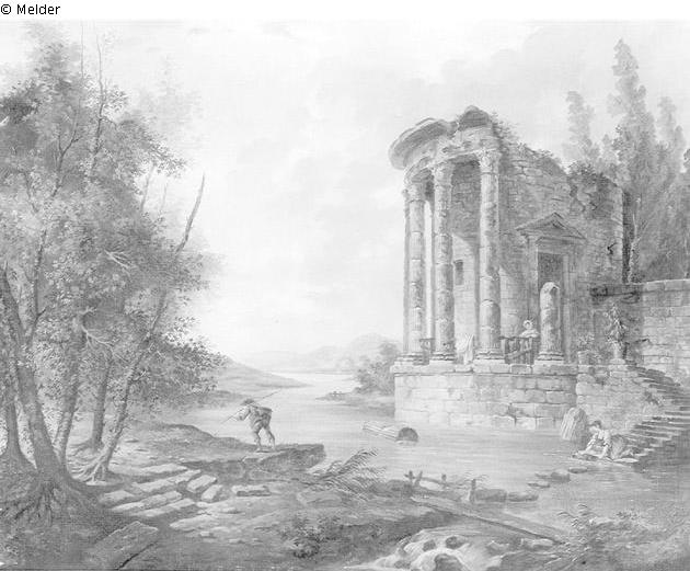 Fundmeldung | Einzelobjekt Römische Landschaft mit Phantasiearchitektur Lost Art-ID219701 Vorherige Weiter Hersteller/Künstler:in Robert, Hubert Geburt 1733.05.22, Paris Tod 1808.04.15, Paris WirkungsortRom; Paris TitelRömische Landschaft mit PhantasiearchitekturObjektartMalereiObjektgruppeMalereiMaterial / TechnikÖl ; Leinwand / gemalt Höhe 100,00 cm Breite 124,00 cm Inventarnummermü4151Beschreibung Rechts Rundtempel m.Säulen, teilw.verfallen, am Wasser. Auf Treppe kniend eine Wäscherin. Halb-links Angler (nach halblinks gehend). Links Bäume, Hintergrund Berge.; Zugang: na (teilweise geklärt) Weiterlesen Weniger anzeigen Bestand Kulturgüter aus dem ehemaligen ReichsvermögenProvenienz 01.12.41 aus dem Besitz des Dr. Hans Heinrich v. Schoen für das Dt. Reich erworben. Weiterlesen Weniger anzeigen Veröffentlicht seit2001 Kontakt Kunstverwaltung des Bundes Herbert-Bayer-Straße 5 13086 Berlin Deutschland E-Mailprovenienzforschung@kvdb.bund.deHomepagehttp://www.kunstverwaltung.bund.de