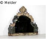 Halbovales Spiegeloberteil "in venezianischer Art" mit geschwungenem Rahmen, in den Blüten- und Blattmotive eingeschliffen sind.