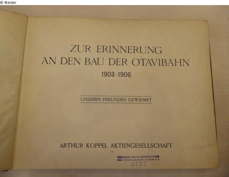 Stempel der „Gesellschaft zur Wiedererrichtung eines Verkehrsmuseums in Berlin e.V.“ nebst handschriftlicher Notiz „2505“;