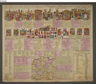 Fundmeldung Karte „Germaniae; Compendium tria continens Imperii Collegia, Eeorumdemque insignia et sessiones ut et circulorum divisiones. Una cum suis annotationibus. Kort Begryp van Duytsland, desselfs Ryx Collegien hunne Zittingen en Wapens Kreits Verdelingen, en Autor:in Schenk, Pieter d. Ä. Objektart Karte / Grundrisse Material / TechnikPapierLost Art-ID598216