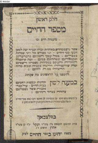 Fundmeldung Seferha- ḥayim: ... u-vo mefurash kol dine śimaḥot be-kiflayim ... / Ḥēleq 1 asher nidpas meḥudash be-otiyot u-vi-deyo u-vi-neyar yafeh ... Verlag Zeḳl ben Aharon Objektart Buch Lost Art-ID612422