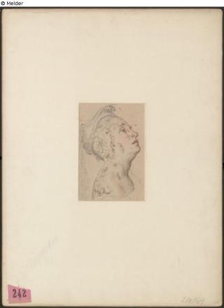 Fundmeldung Frauenkopf, nach rechts oben blickend, von der Seite Hersteller/Künstler:in Schuppen, Peter Ludwig van (?) Hersteller/Künstler:in Schuppen, Jacob van (?) Objektart Zeichnung Material / TechnikPapier ; Bleistift / gezeichnet ; gehöht rotLost Art-ID619355