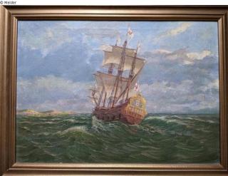 Fundmeldung Kurbrandenburgisches Schiff; vermutlich die Fregatte MORIAN, Baujahr 1686 Hersteller/Künstler:in Häger, Emil Objektart Gemälde Material / TechnikÖl ; Leinwand / gemaltLost Art-ID616311
