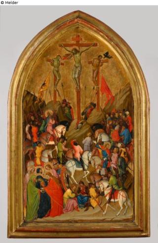 Fundmeldung Crocifissione Kreuzigungsbild mit vielen Figuren Hersteller/Künstler:in Bugiardini, Giuliano di Piero di Simone (zugeschrieben historisch Lorenzo di Niccolò) Objektart Gemälde Material / TechnikTempera ; Holz / gemaltLost Art-ID630018