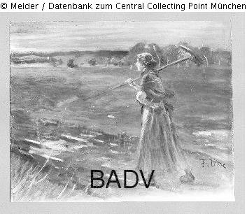 Auf dem Heimweg, Bäuerin mit Rechen