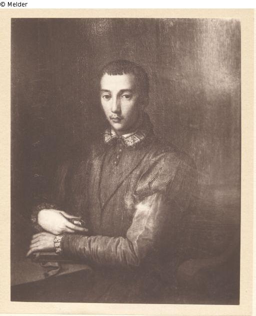 Junger Mann auf einem Stuhl am Tisch sitzend, in rotem Wams, die Hände vor sich auf dem Tisch auf einem Buch liegend; Inventar 1883: 3 Fuß x 1 Fuß preußisch; Graf von Ingenheim´sche Bildersammlung, Erbinventar - Gemäldeverzeichnis: Nr. 53, Reisewitz, 1883