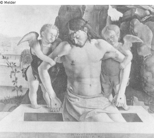 Der tote Christus von zwei Engeln gestützt